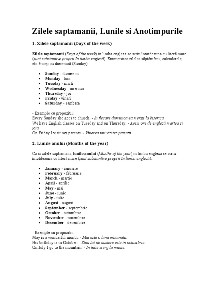 Cum Se Scriu Zilele Saptamanii In Engleza